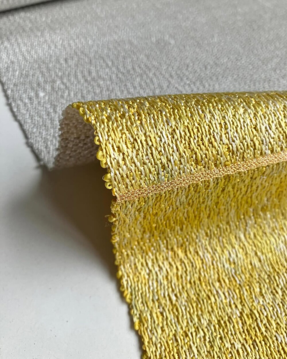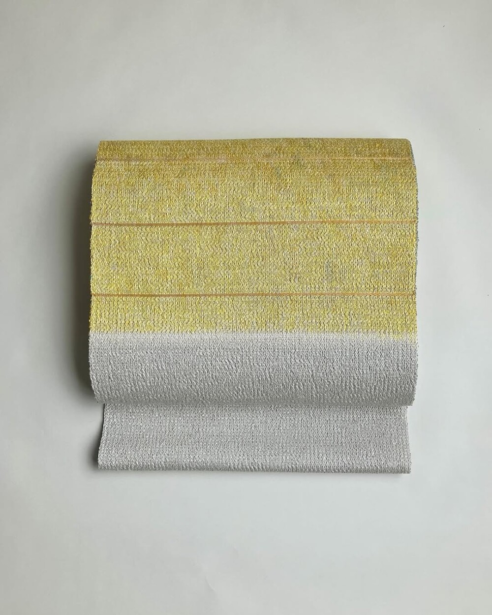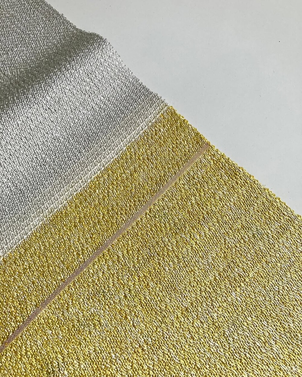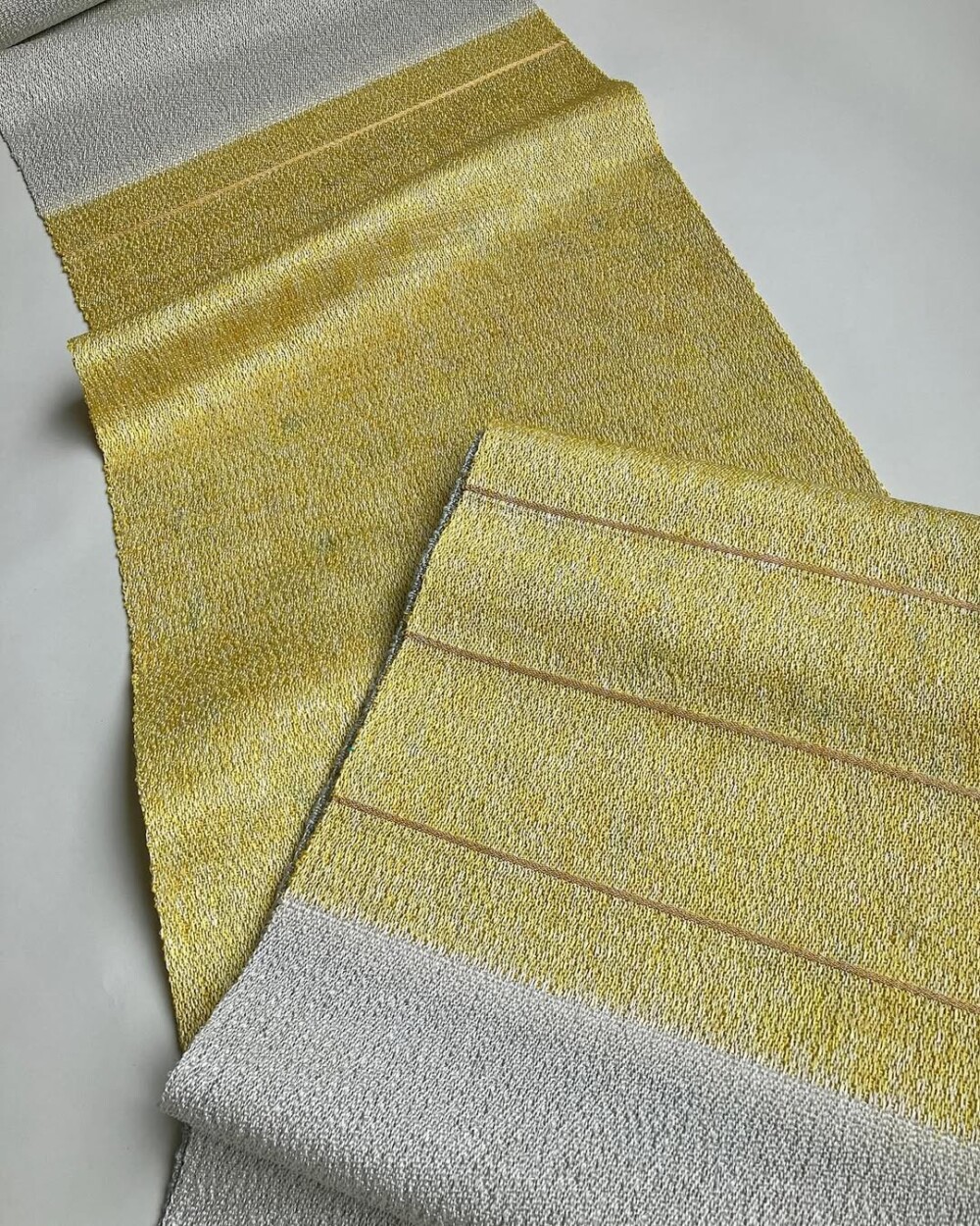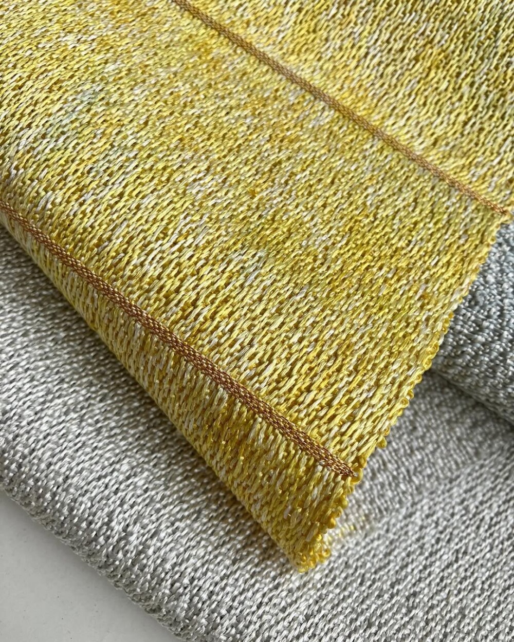 さりげないですが、イエローとグレーでは織り方を変えています。