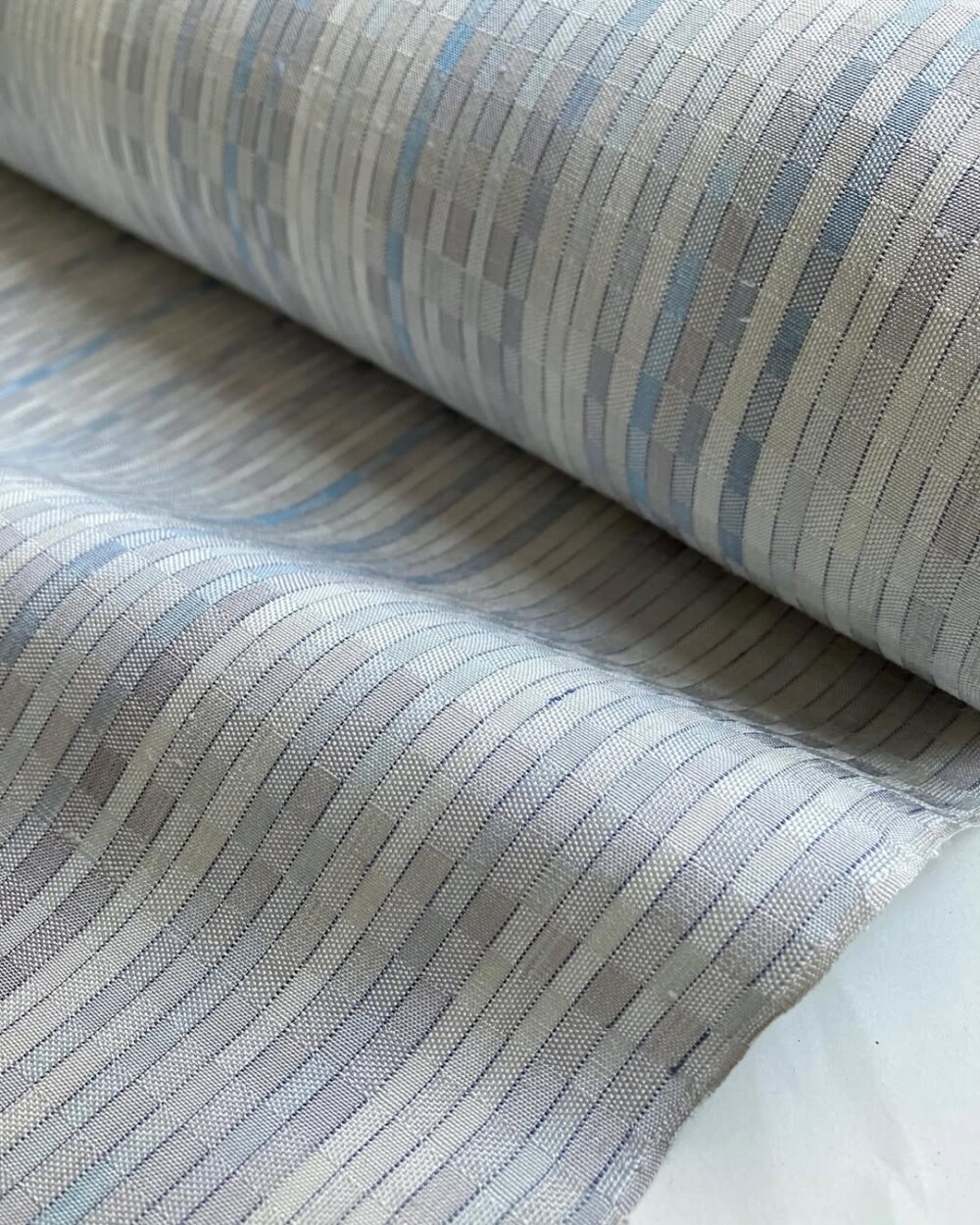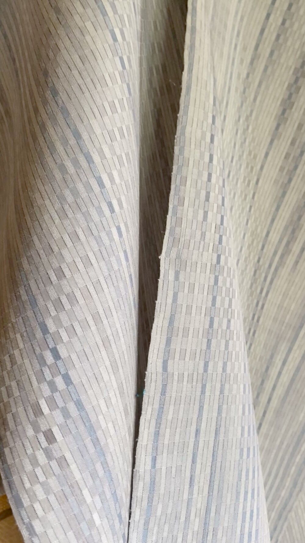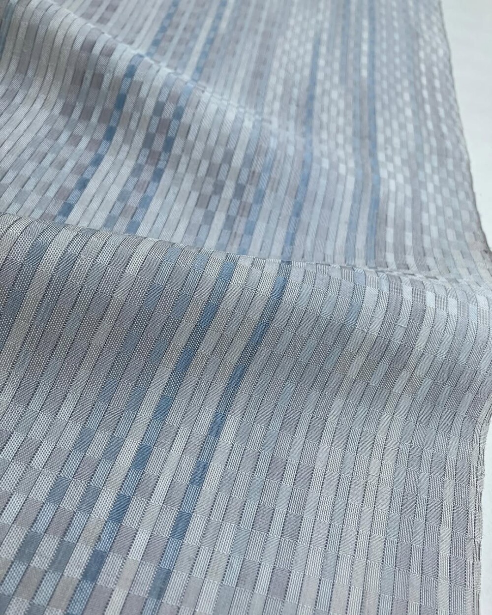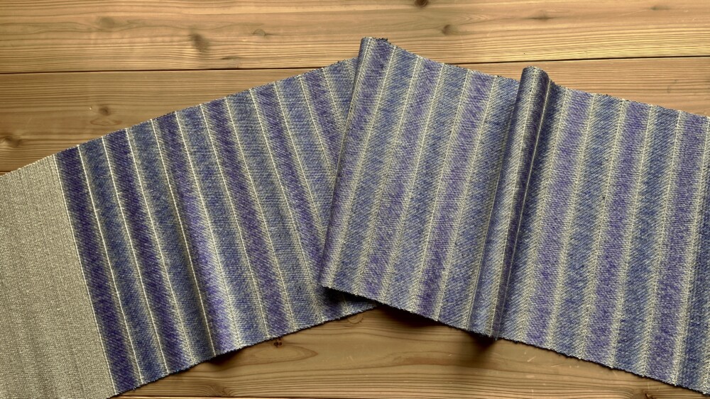 工房移転の準備をしながら、29年間の関東での染織の集大成として作りました。ブラッシング、ずらし絣、縞割、畝織りの、渾身の作です。