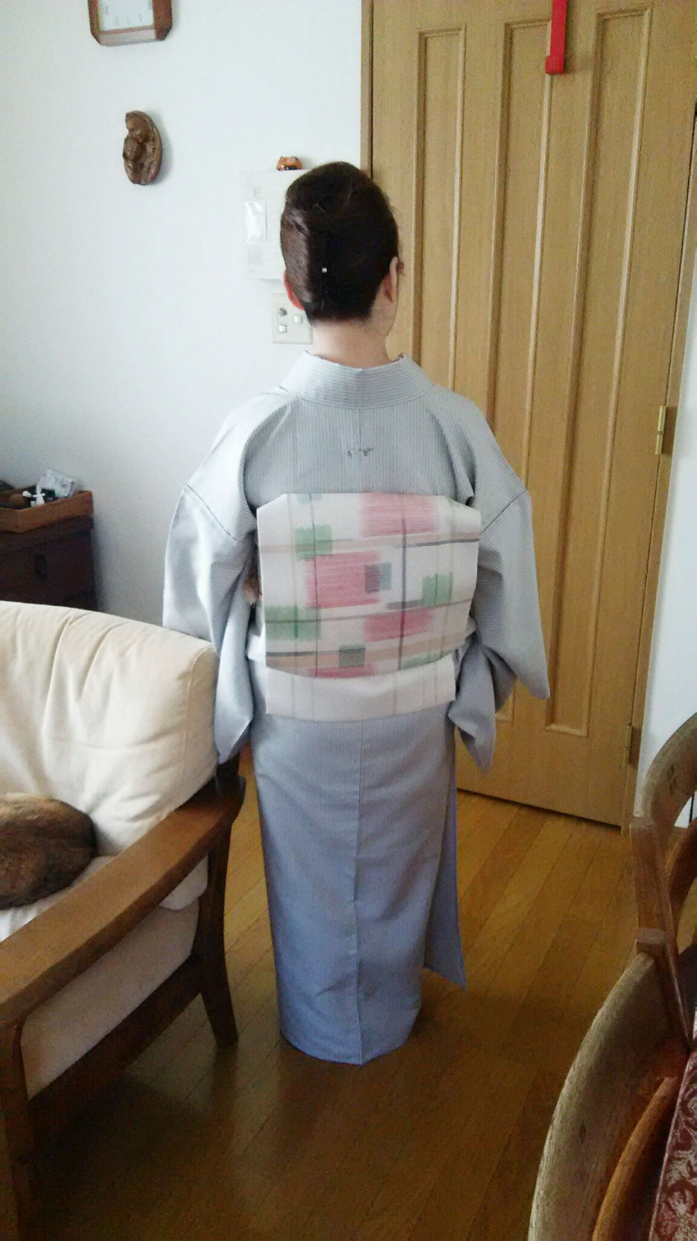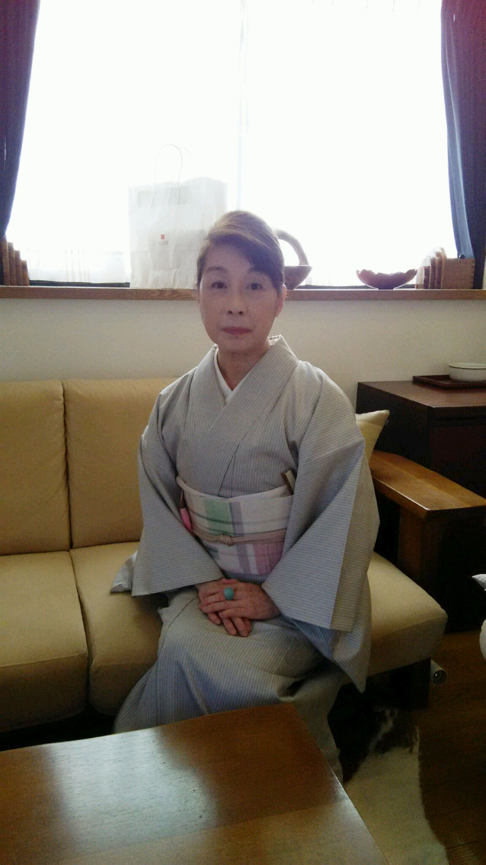 タテもヨコも絣の贅沢な帯です。とても素敵に締めていただけて、光栄です。